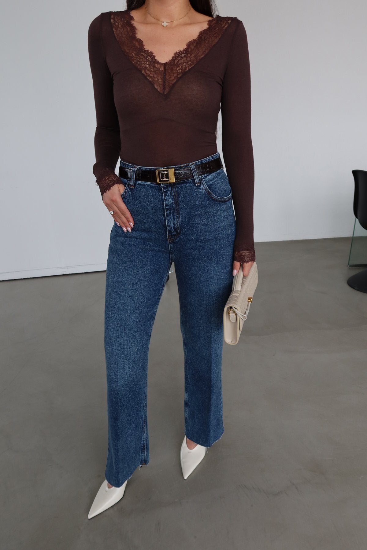 V Yaka Dantelli Kaşmir Bluz
